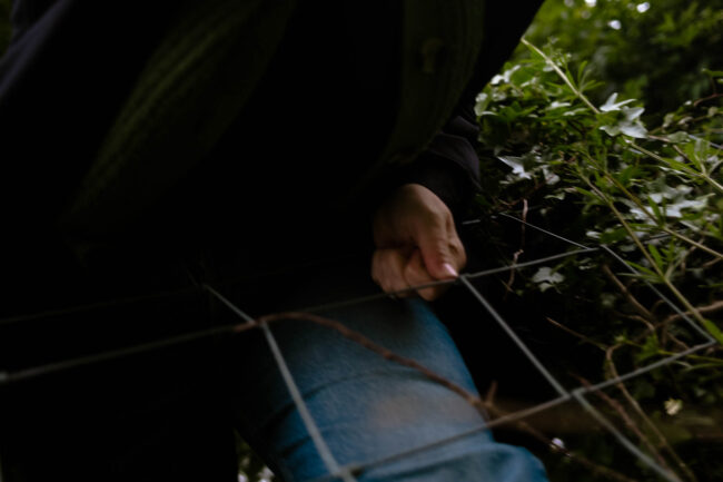 The work explores how permitted routes of access, while ostensibly opening up the land to many, in fact entrench this disconnection from the environment – reinforcing the concept of ‘landscape’ as a curated scene to be viewed from afar rather than an environment in which to immerse ourselves and rediscover our symbiotic connection, placing us in conflict with a land we should be attuned to. The concept of trespass – and our wariness to do so – discolours our perception and stewardship of the land, dislocating us from something that we are part of and connected to on a deeper level.